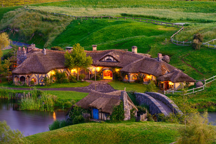 - Tham quan 44 ngôi nhà của làng Hobbit được xây dựng nửa chìm nửa nổi trong lòng đất nhìn xinh xắn như 1 chiếc hang thỏ. Mỗi căn nhà đều được trang trí tinh tế với nhiều chủ đề khác nhau như 1 ngôi làng thứ thiệt. Nhà thì bán bánh mì, nhà thì bán phô mai, làm vườn, xẻ gỗ… Điểm thu hút chính của ngôi làng là nhà Bag End của Bilbo Baggin trong phim Chúa tể của những chiếc nhẫn. Căn nhà có chiếc cửa màu xanh cổ vịt, nằm ở vị trí đắc địa, có hướng nhìn ra thung lũng phía dưới .